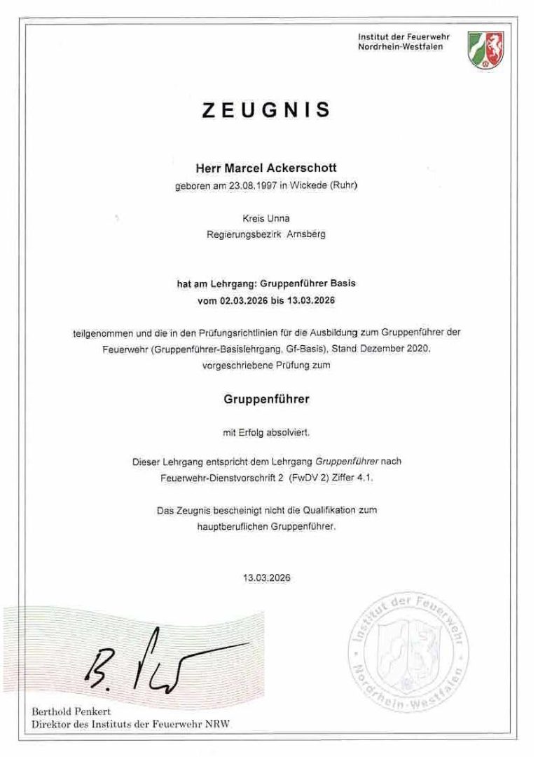 Bescheinigung Gruppenführer-Basis NRW